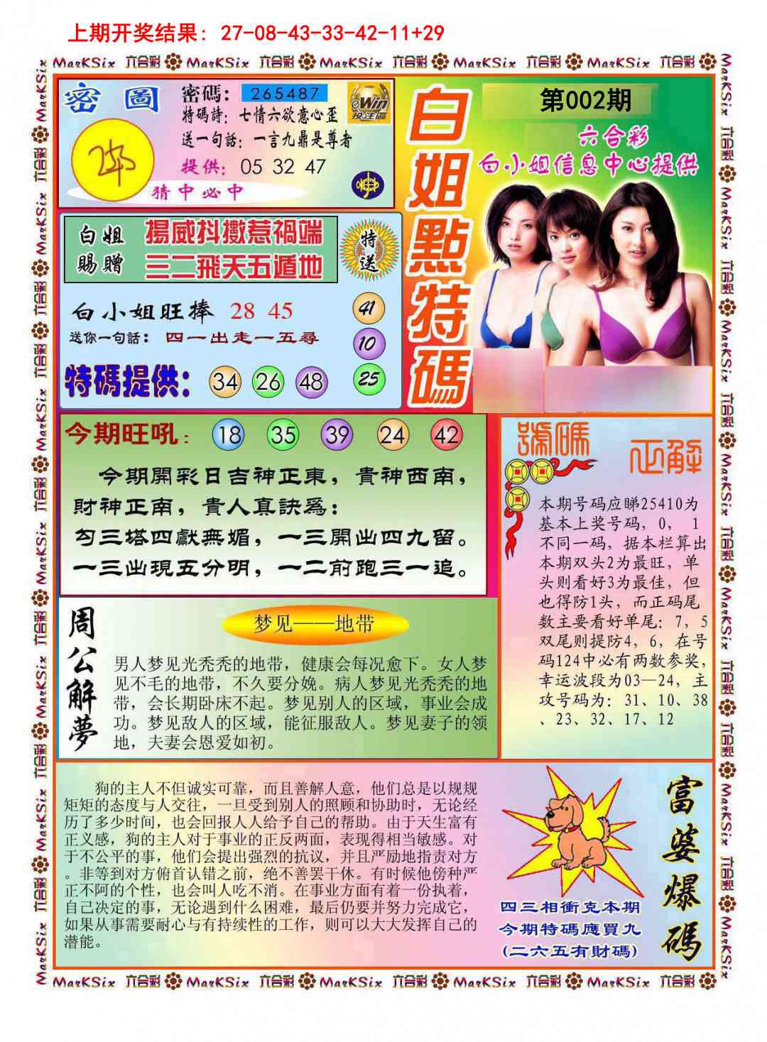 002期:澳门神算子『白小姐点特』